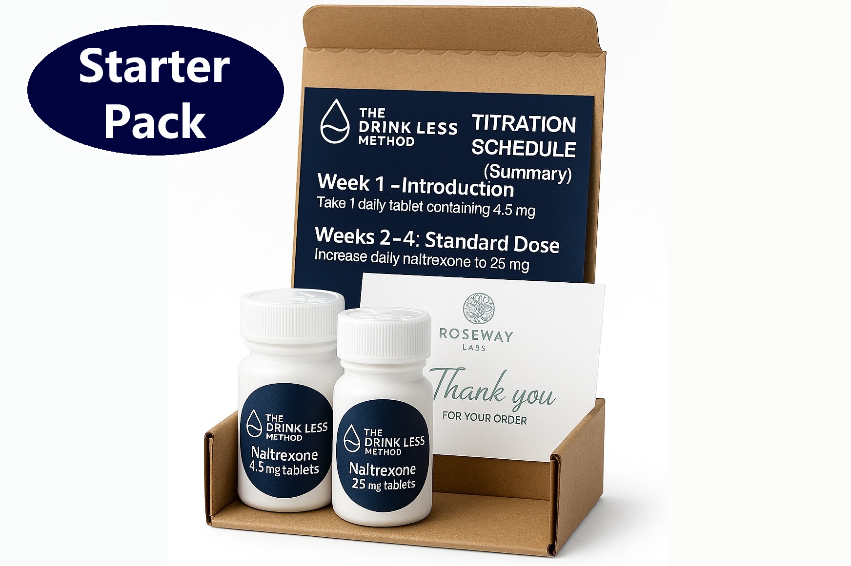 - Pack of 30 Naltrexone tablets at low dose 4.5mg strength for use during the first 10 days according to your plan
